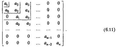 Для характеристического уравнения (6.9) составим квадратную матрицу (таблицу) коэффициентов, содержащую п строк и п столбцов: