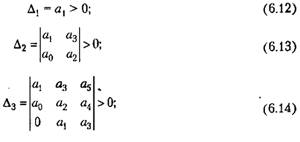 Как видно, уже для уравнения пятой степени условия устойчивости но критерию Гурвица получаются достаточно громоздкими. Поэтому использование этого критерия практически ограничивается уравнениями четвертого порядка.